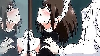 Breasty anime maid pleasures her girl taskmaster with titty massage